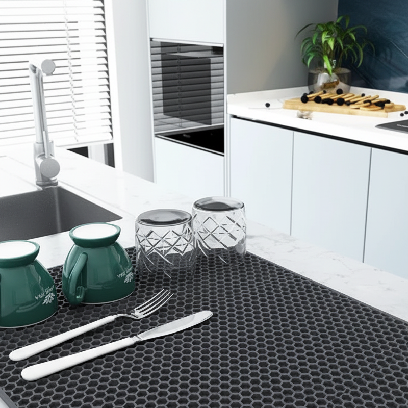 Dish Mat by 4EVA is a practical and hygienic solution for your kitchen. Made from innovative 4EVA material, it’s moisture-resistant, quick-drying, and easy to clean. Unlike traditional dish mats, it doesn’t trap odors or stains, always staying fresh and neat. The hypoallergenic and eco-friendly design ensures safety and durability, making it the perfect choice for everyday use.